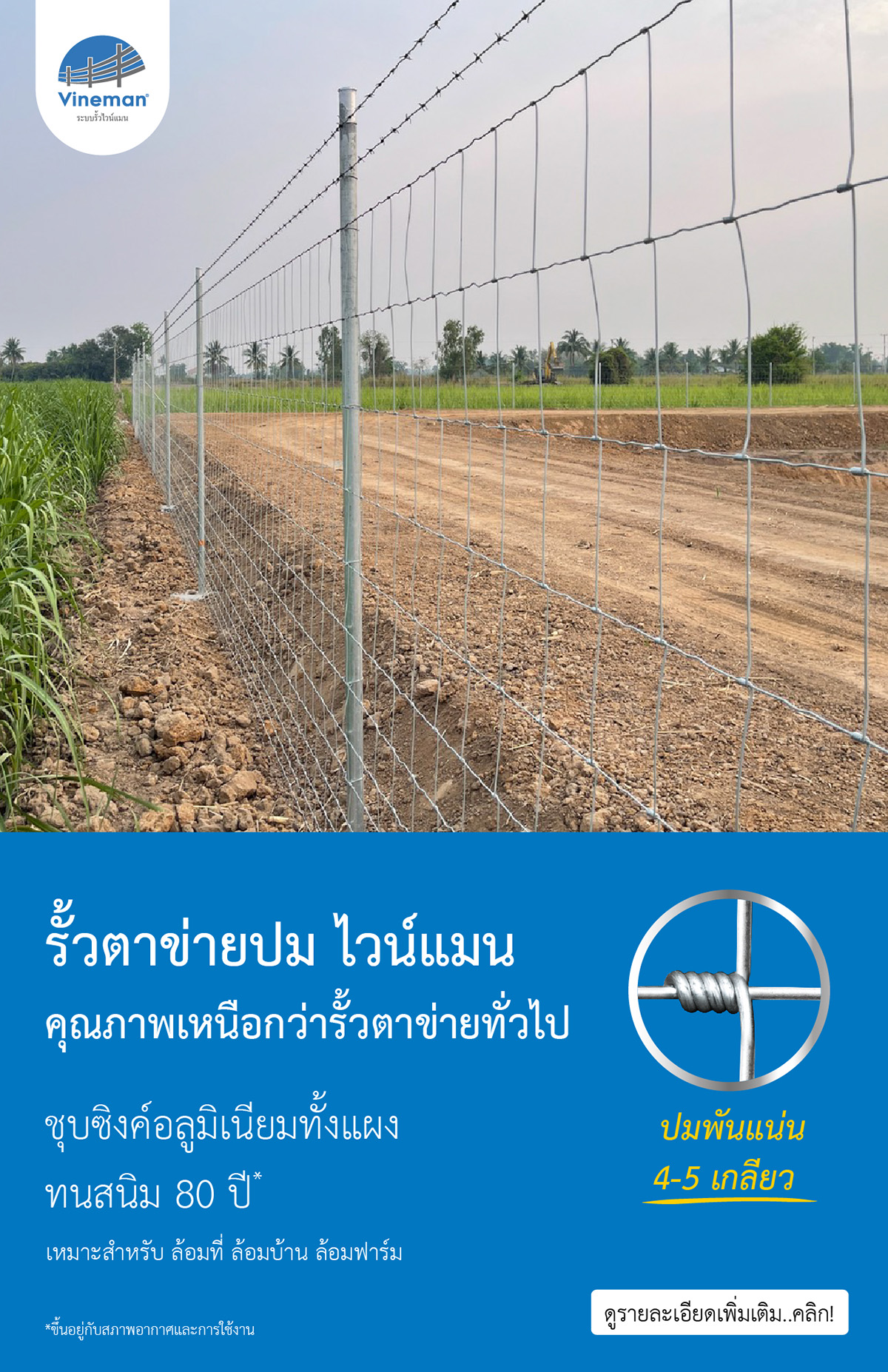 ระบบรั้วตาข่ายไวน์แมนประกอบ รั้วตาข่ายถักปม / รั้วตาข่ายฟิคซ์ล็อค /