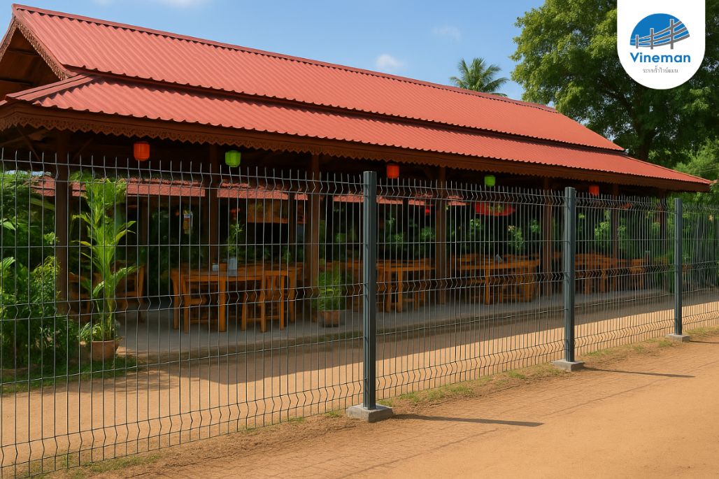 รั้วตะแกรงเหล็ก 3D ล้อมร้านอาหาร