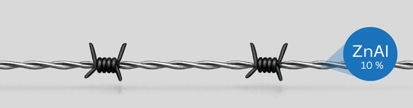 ลวดหนามไวน์แมนเลือกใช้ลวดเคลือบซิงค์อลูมิเนียม มีส่วนผสมอลูมิเนียม 10% (Zinc-Aluminium) ซึ่งเป็นเทคโนโลยีเคลือบโลหะที่มีความทนต่อการกัดกร่อนสูงกว่าแบบกัลวาไนซ์ทั่วไป โดยโครงสร้างของชั้นเคลือบจะช่วยป้องกันการเกิดสนิมและลดการสึกกร่อนจากสภาพแวดล้อมภายนอก